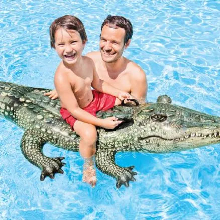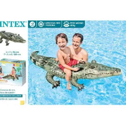 Cocodrilo hinchable 170x86cm de Intex. Colchoneta hinchable Intex con forma de cocodrilo. Dispone de 2 cámaras de aire para una mayor seguridad en el agua. Lleva incorporada dos resistentes asas para una mayor sujeción y estabilidad.