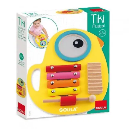 Tiki Musical 3 en 1 de Diset. Primer juguete musical de madera para tu bebé. Tres juguetes en uno, Xilófono, Güiro y tambor. Potencian la audición y el sentido del ritmo. Lleva una asa para que sea fácil de llevar de un sitio a otro. Favorece la percepción sensorial y musical. Promueven la destreza manual y la coordinación ojo-mano. Con este tipo de juguetes los niños crecen con felicidad y creatividad.