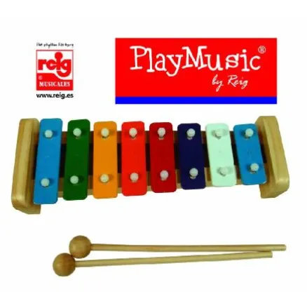 Xilófono 8 nota de madera de Claudio Reig. Favorece la desinhibición y la familiarización con la música. Ejercita el ritmo y la imaginación.